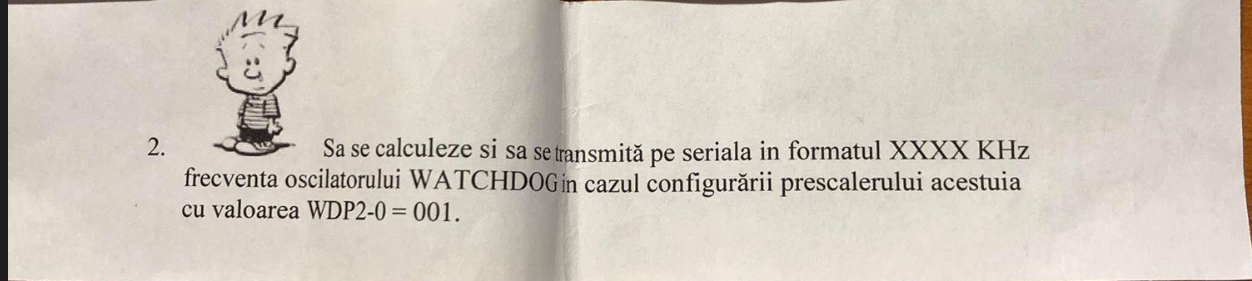 Dacă vrei să fii sigur că profesorul îți punctează codul ca fiind robust, folosește Modul Întrerupere al Watchdog-ului. Acesta nu resetează procesorul, deci elimini eroarea dată de timpul de start-up: